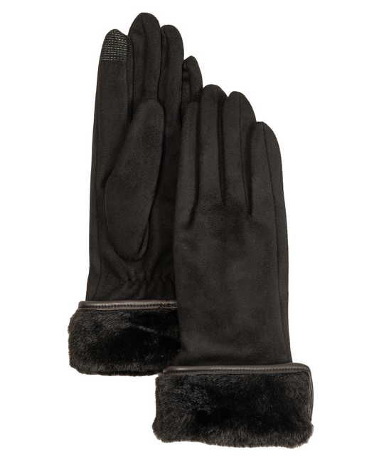 Stretch Suede Fold-Up Faux Fur Cuff Gloves