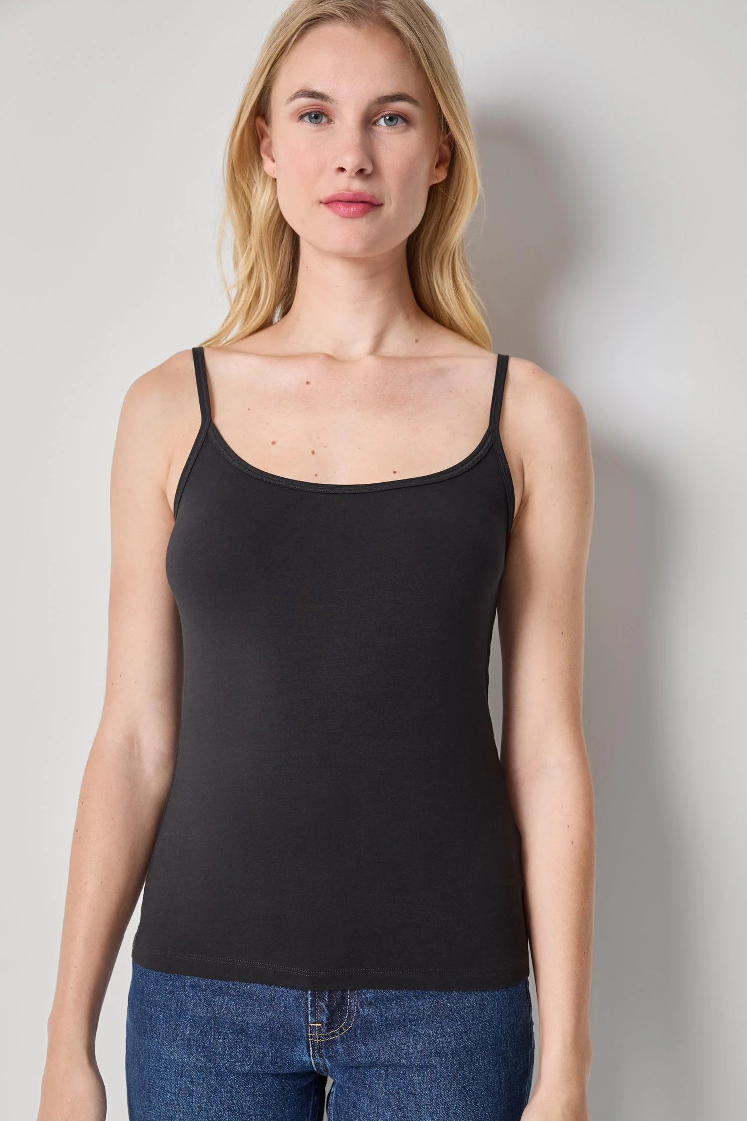 The Camisole is your essential, invisible foundation piece. Relaunched and better than ever, we've blended beautiful Pima Cotton with a hint of Spandex for the perfect fit that moves with you all day. Designed with delicate, narrow trims, this cami is clean and simple, providing a smooth base under any top or dress.