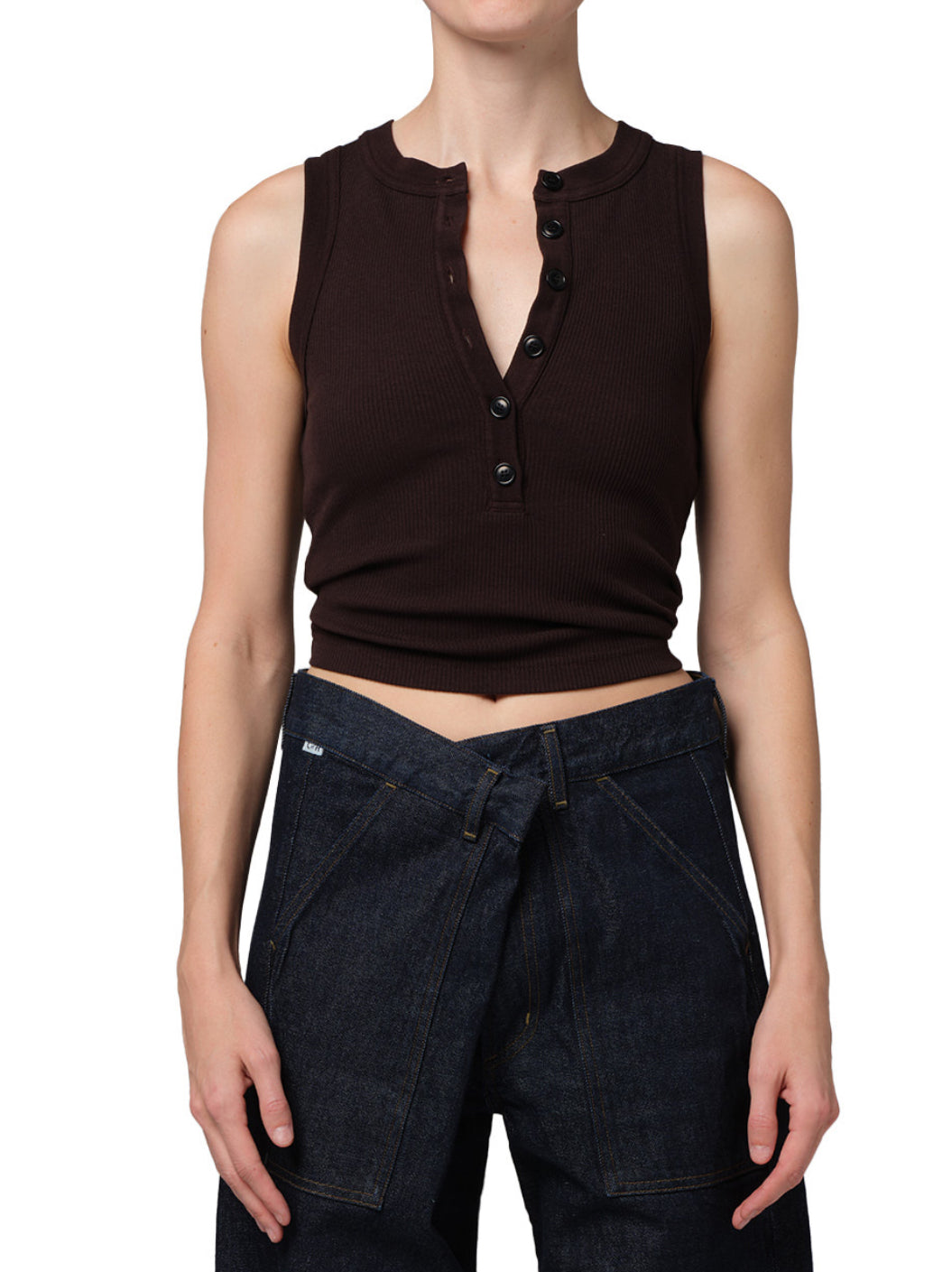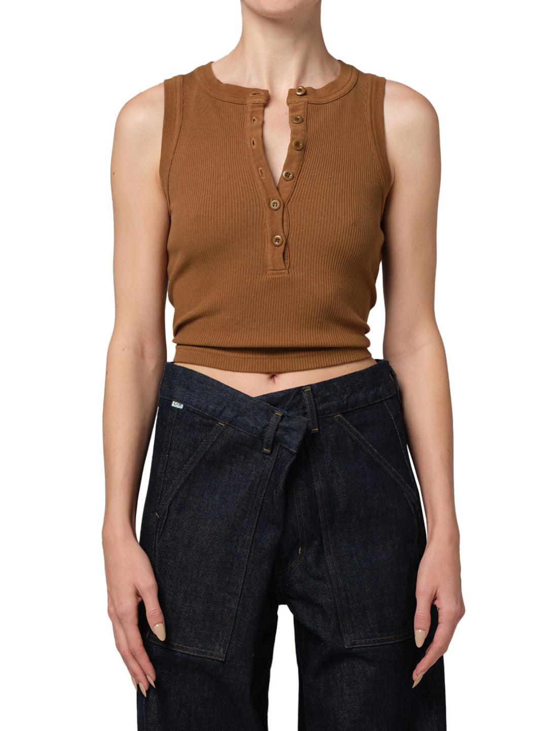 An elevated essential, the Caralyn Tank is crafted from ultra-soft, supportive rib made with regenerative cotton. The sleeveless silhouette features a clean button front and a slim fit that flatters with ease. Perfect layered under shirting or worn solo with denim.
