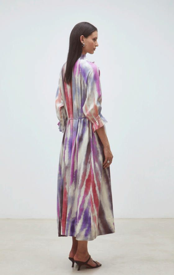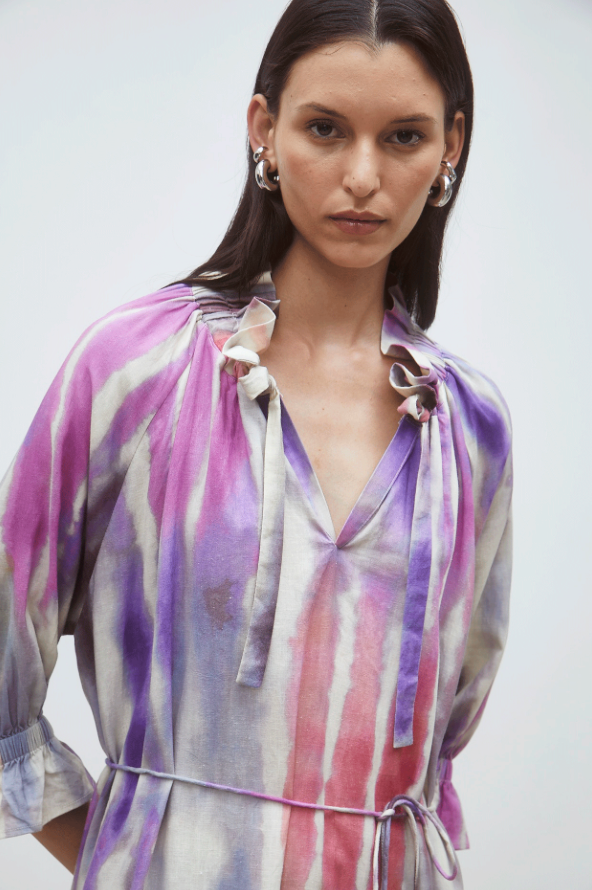 Elevate your spring wardrobe with the Cosmic Midi, a refined symphony of 55% linen and 45% viscose. This long-sleeve dress, adorned in an exquisite tapestry of colors, embodies effortless sophistication. Its flowing silhouette drapes elegantly, inviting the wearer to revel in both comfort and artistry, making each moment a statement of style.