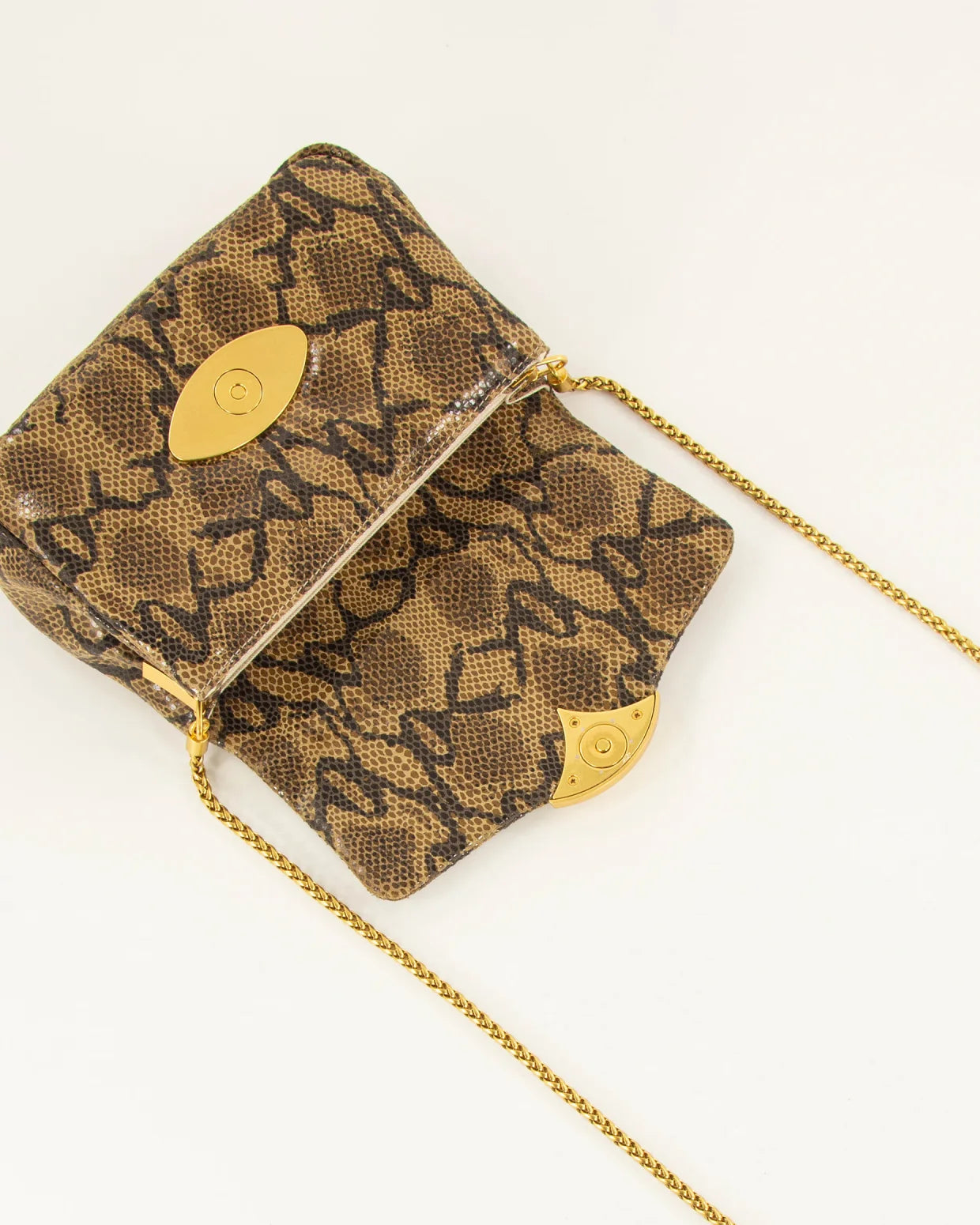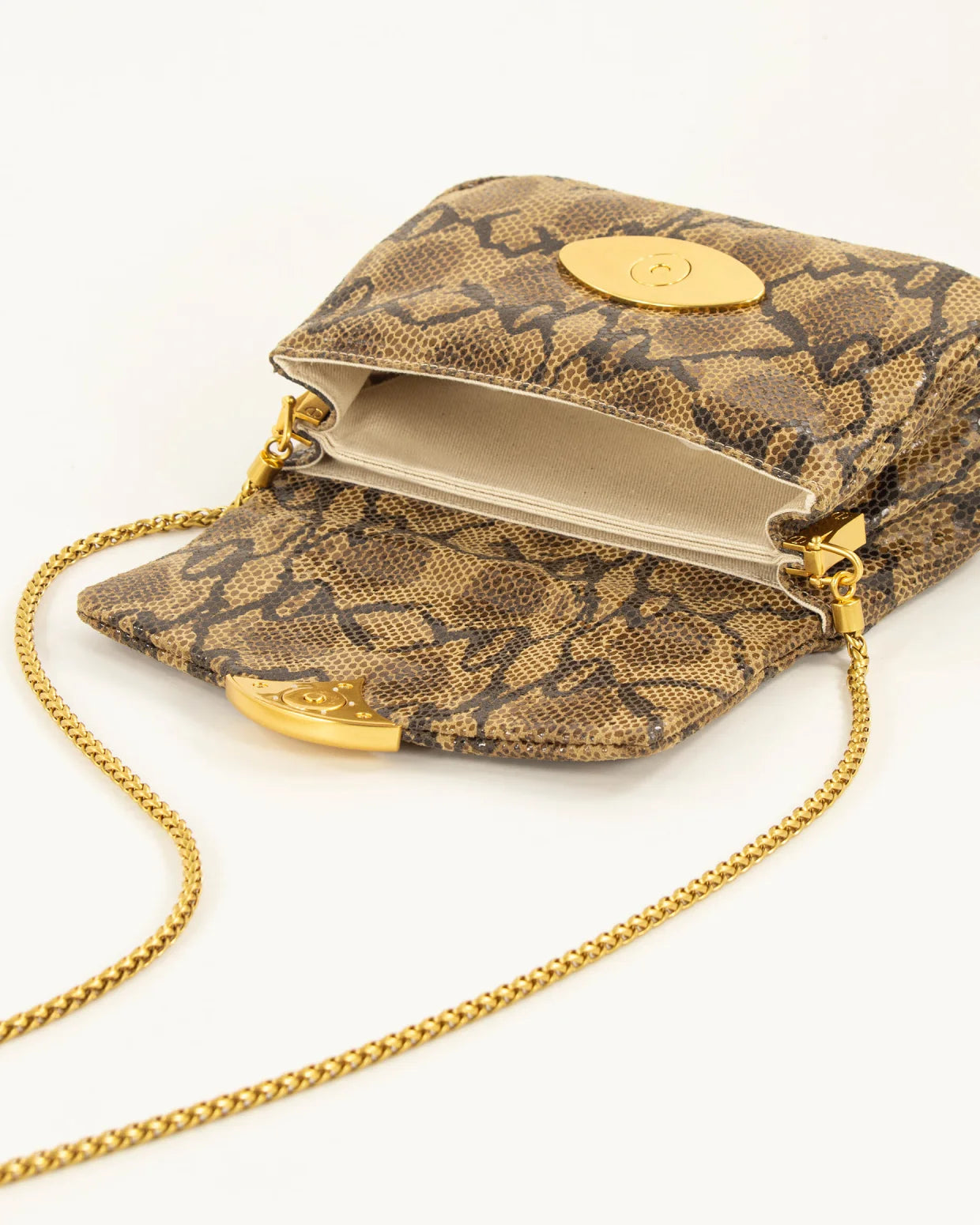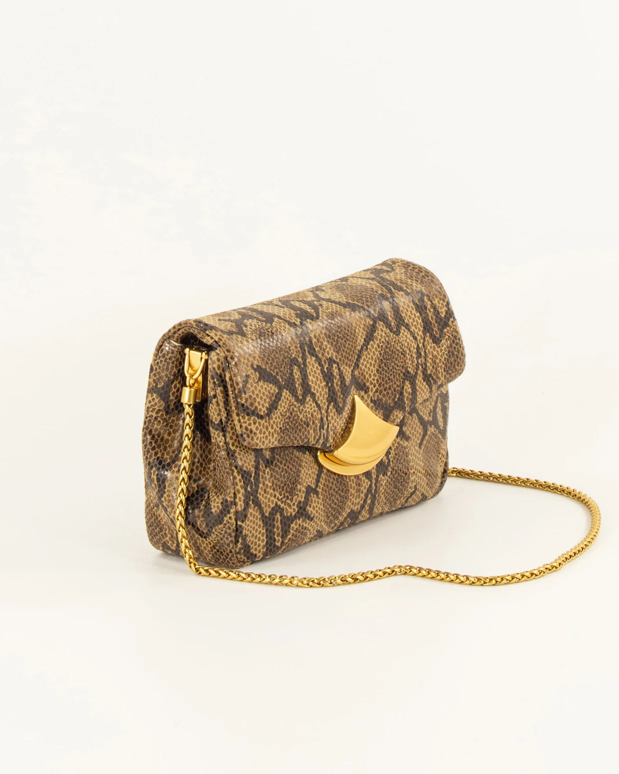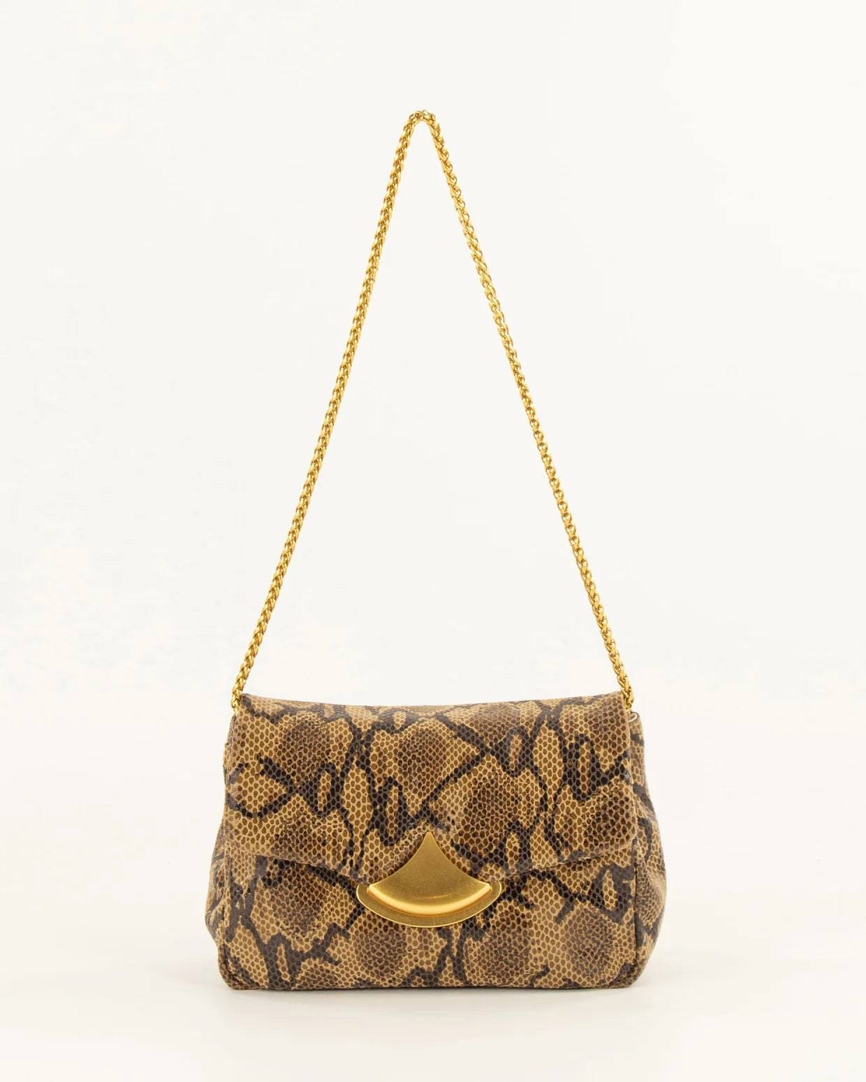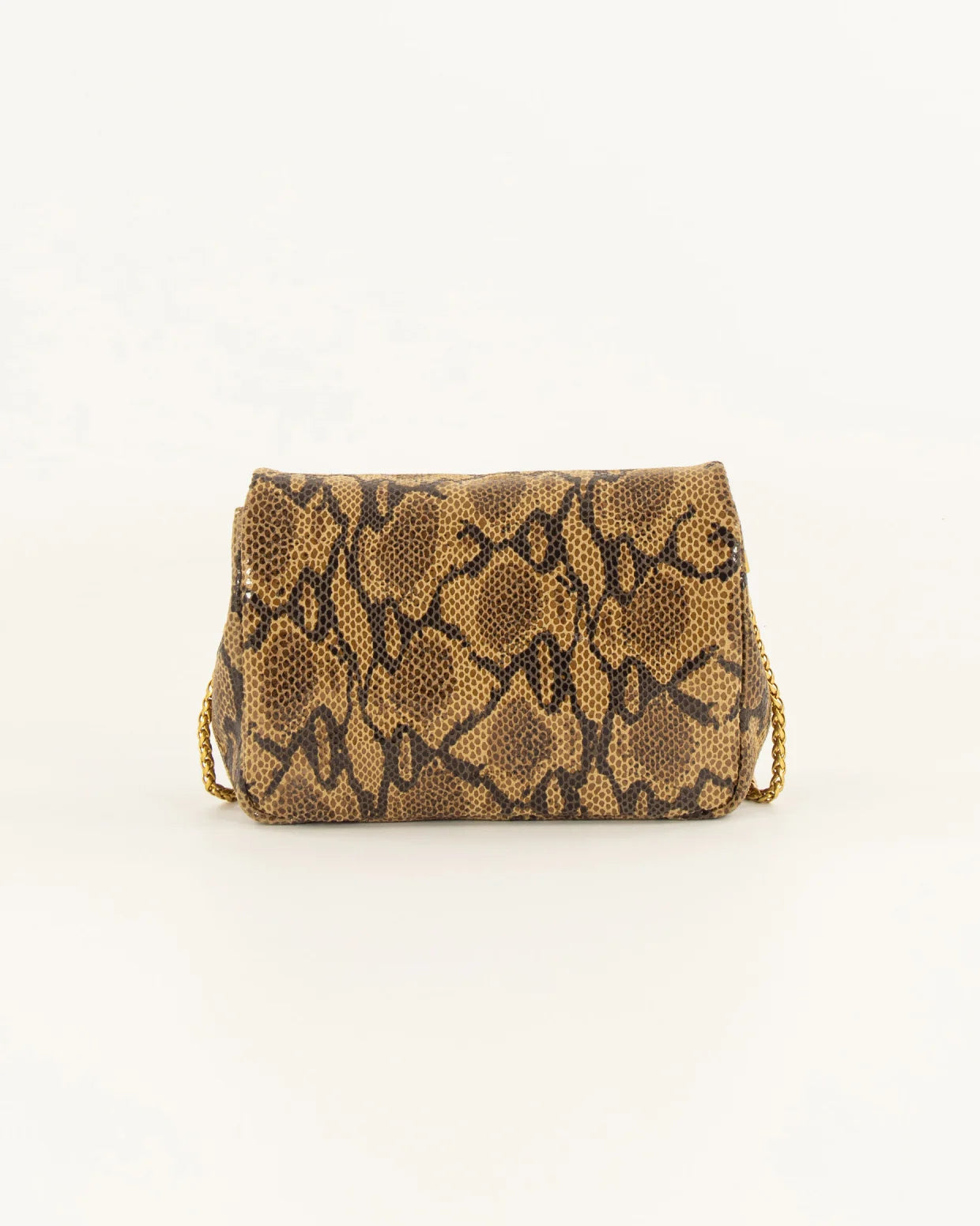 Suede python-print cow leather chain bag with three compartments. Magnetic clasp, developed exclusively by Sessùn.