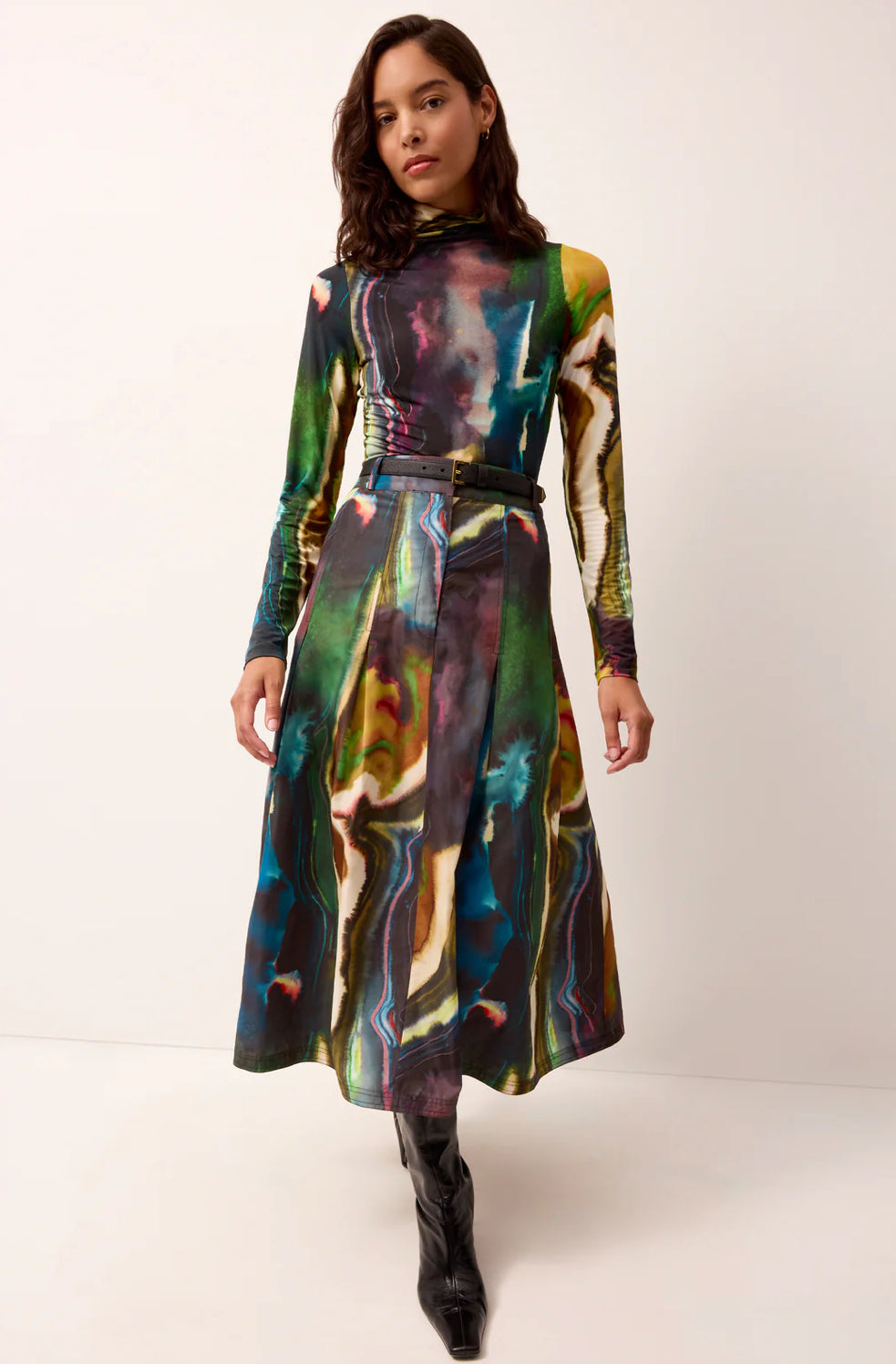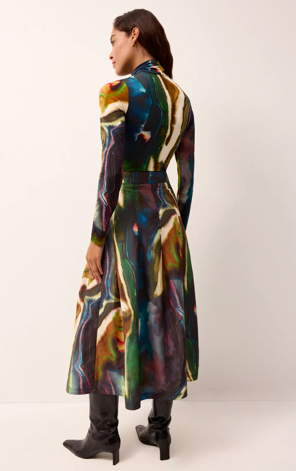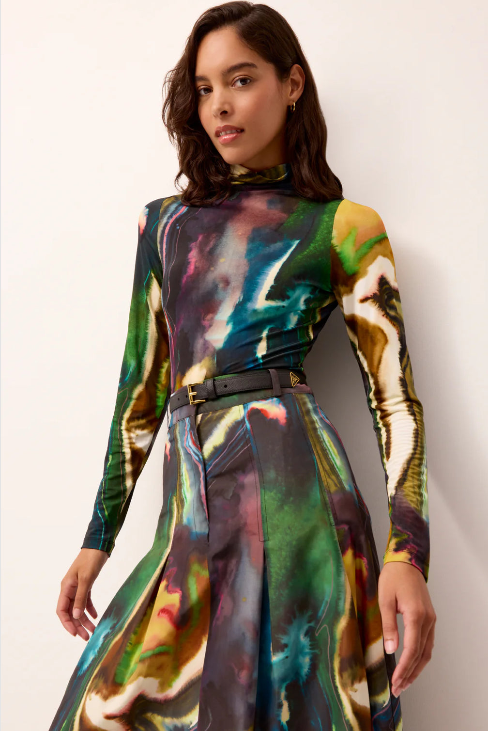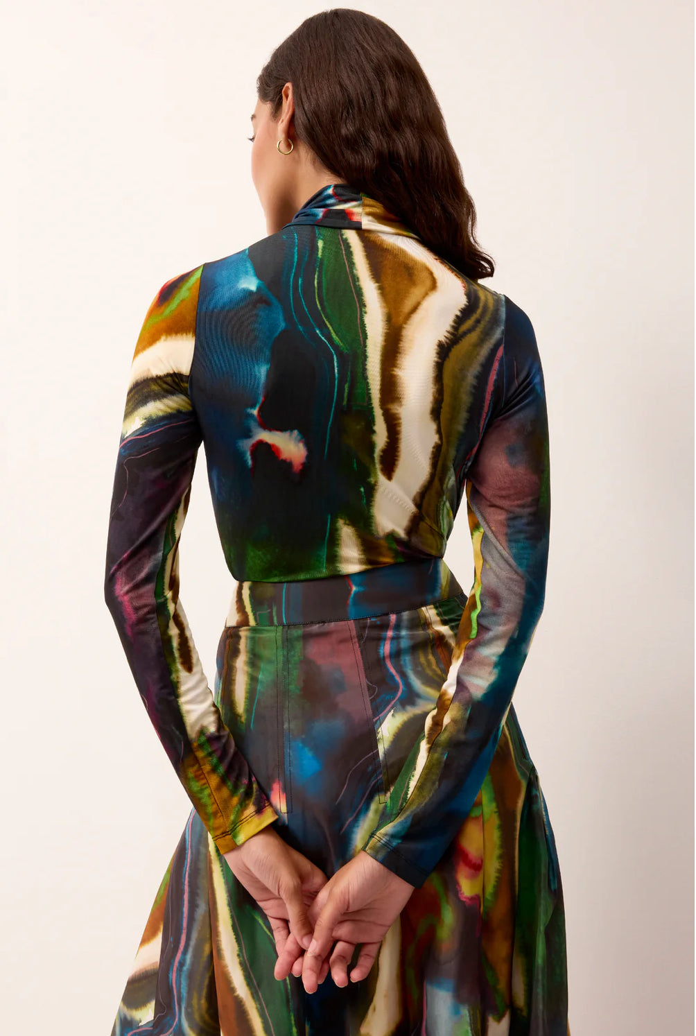 Cut from a sumptuous jersey knit, Marie Oliver’s figure-skimming Eloise top returns in Delta, a striated swirl of color in a moody seasonal palette. Pair Eloise with our Faith skirt for a stylish matching moment.