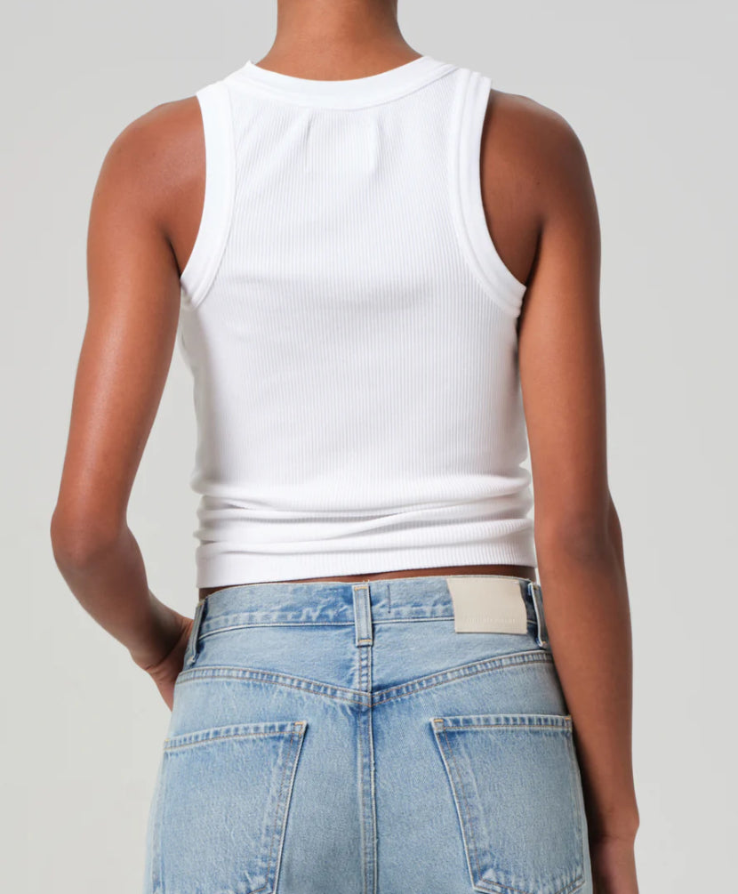 The Isabel Tank is a modern essential, cut in ultra-soft, supportive ribbed cotton with a close, flattering fit. Designed with a high neckline and clean finish, it’s ideal worn solo or layered under structured pieces. A polished base for elevated everyday styling.
