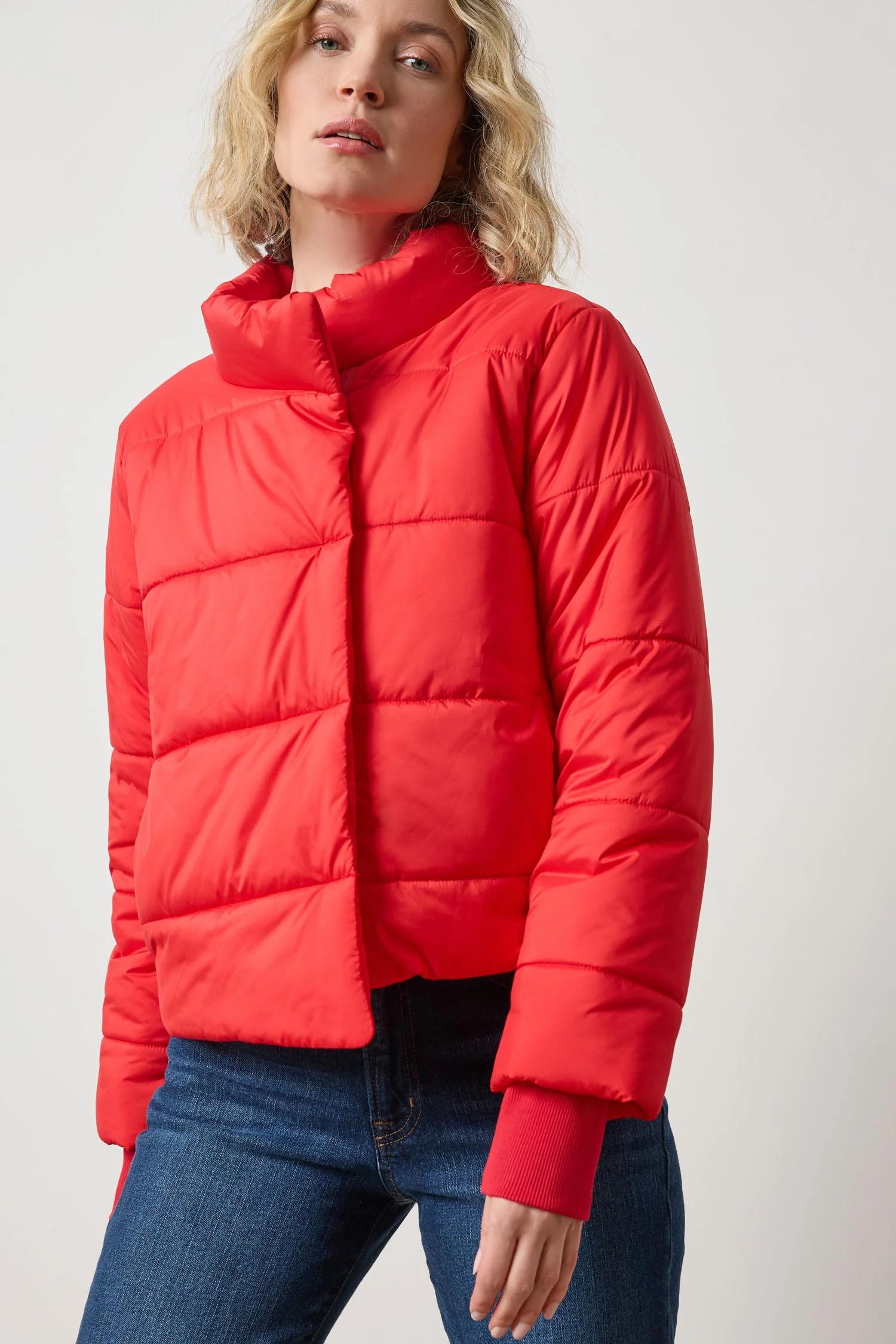 The Knit Cuff Jacket is a chic update to a simple jacket, designed with a slight asymmetric cut, poly-fill, and channel stitching for a modern feel. Tonal knit cuffs add texture and refined detail, while the high-hip length makes it an easy layering piece. Wear it snapped or open for versatile styling. Available in both color and neutral options, this is the perfect new addition to your fall wardrobe.