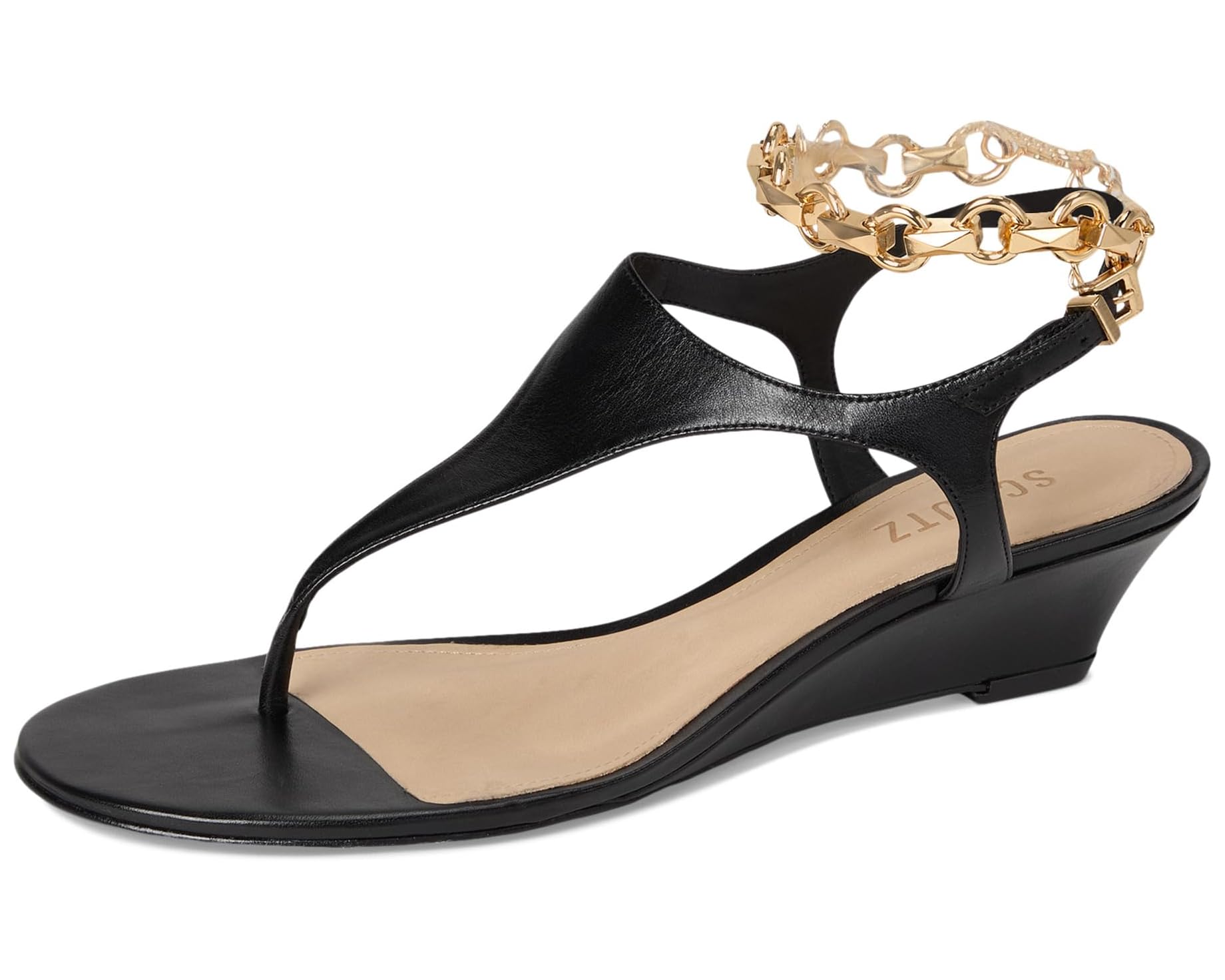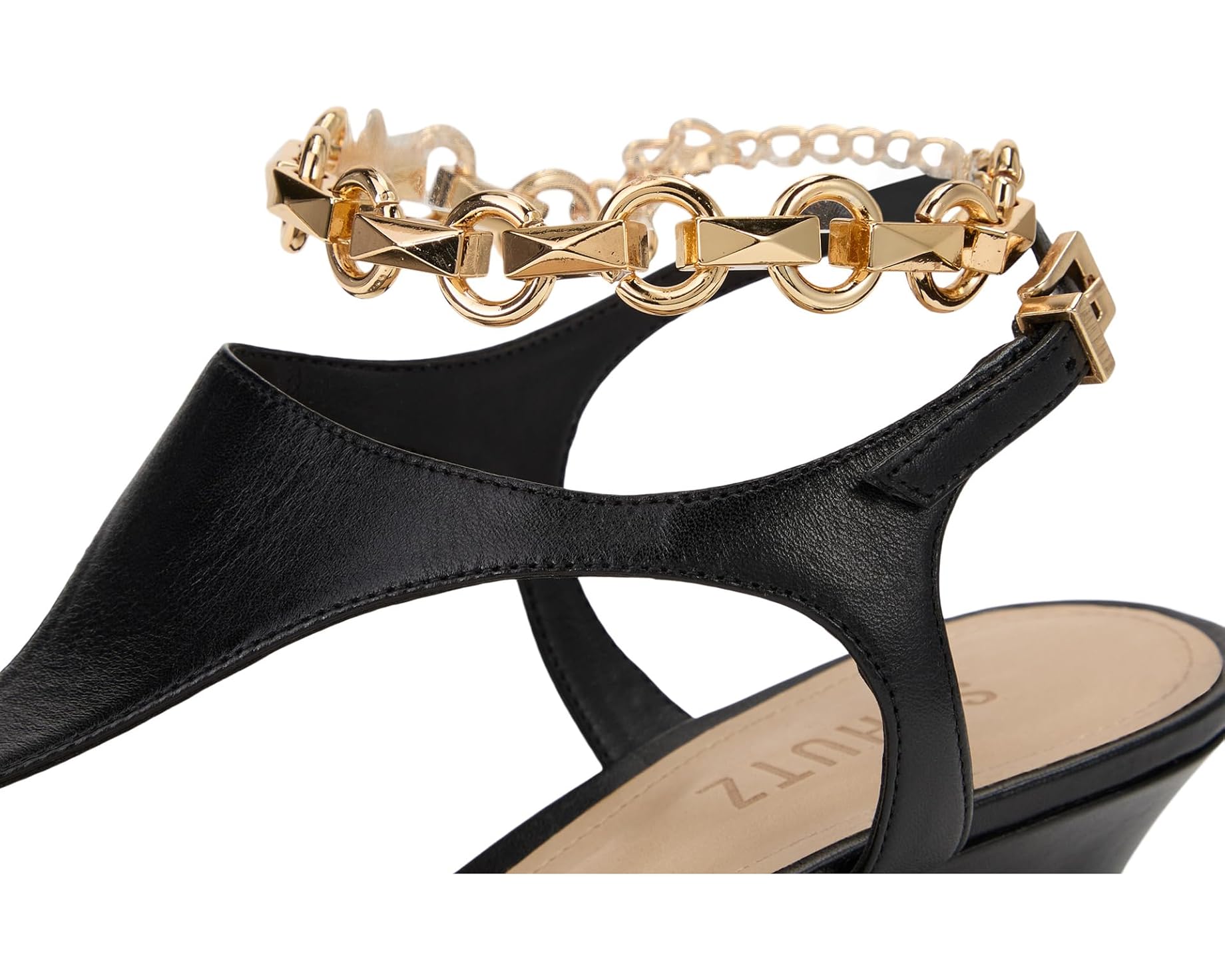 - The Schutz® Lys Wedge sandal features shiny hardware styled as an ankle bracelet, blending elegance with everyday wearability. With a mini wedge heel, it has adjustable buckle closure for a secure fit.