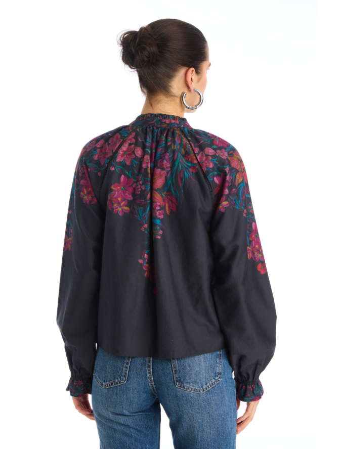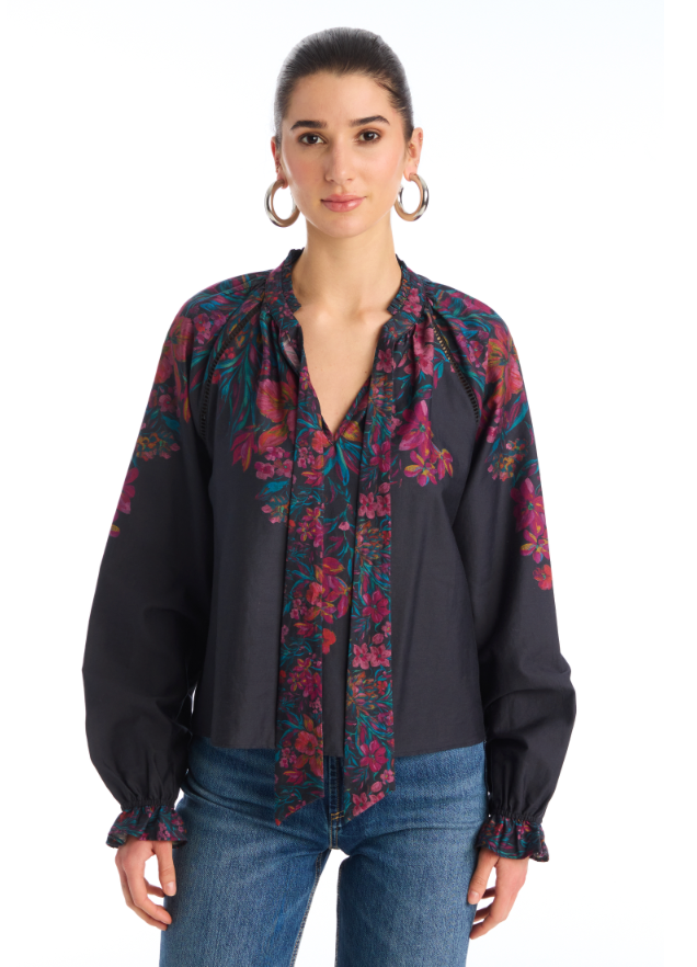 The Marlow Blouse bursts with life in its vibrant floral pattern, featuring long sleeves and a flirty V-neck adorned with charming neck ties. This lively top adds a whimsical touch to your outfit while keeping you comfortable and stylish all day long. Perfect for brightening up any occasion with a playful vibe.