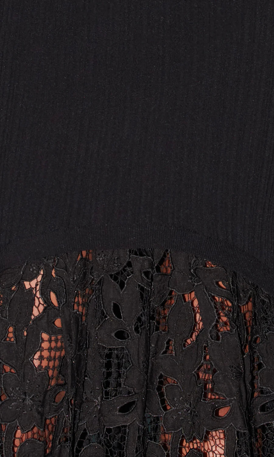 Want to look cool, but keep it simple? Our Rhiannon dress has you covered! This turtleneck maxi dress is the perfect addition to your wardrobe- Rhiannon is casual, yet elevated. Cut from a pleat knit fabric with intricate lace at the hem of the mermaid skirt, for a fun twist on the otherwise simple black dress.