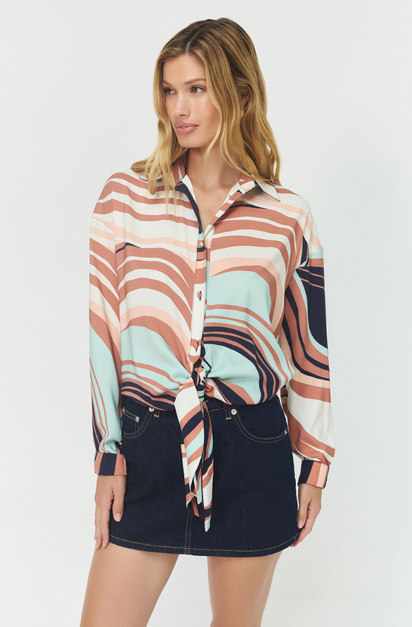 Long sleeve button down top with tie