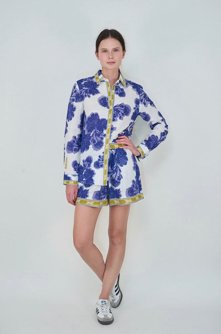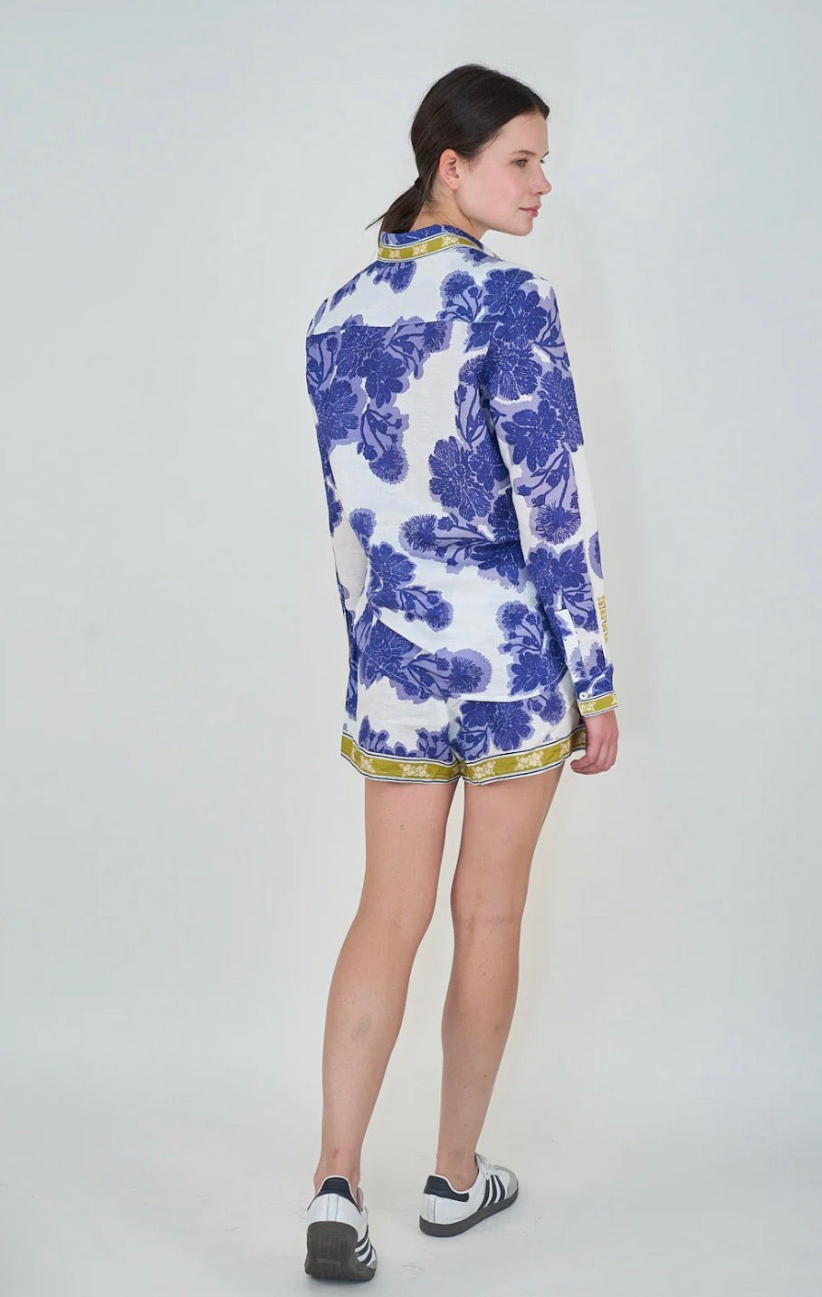 Fresh and effortless, these cotton-linen shorts showcase our Wildflower Blue print in full bloom.