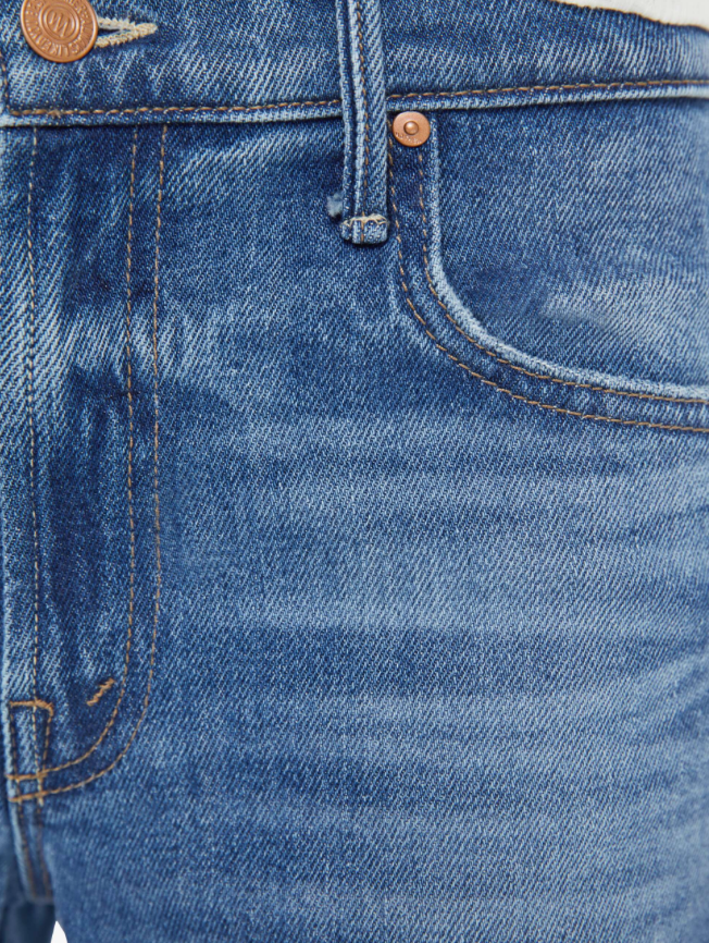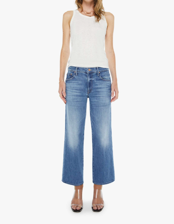 Buckle up. Mid-rise jeans with a loose fit, wide leg and ankle-length inseam with a clean hem. Made from stretch denim.
