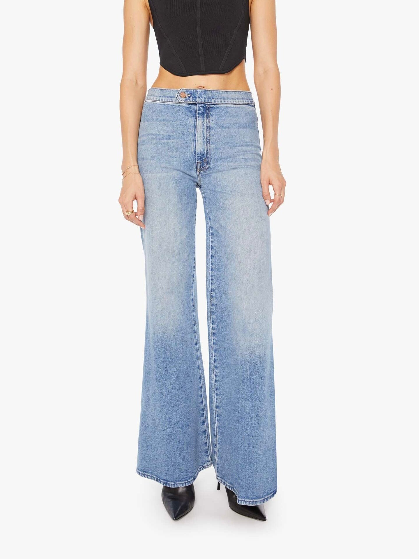 This iconic high-waisted wide leg has a zip fly, buttoned waistband, 31-inch inseam and clean hem. Made from denim with a touch of stretch, Fight For Your Right is a mid-blue with whiskering and fading at the knees.